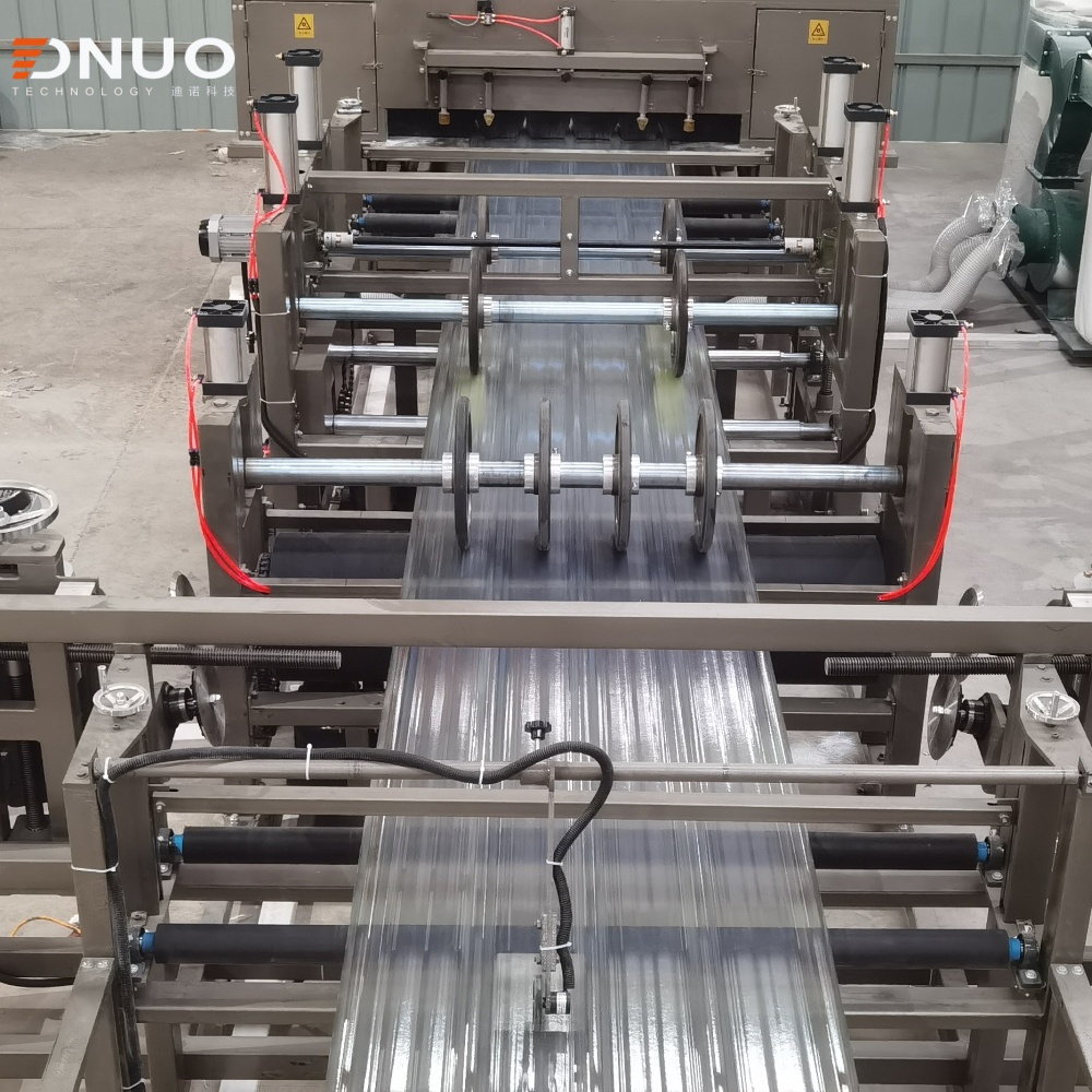 This production line can produce corrugated roof sheet with color &transparent, common flat sheet, decorative sheet and so on.